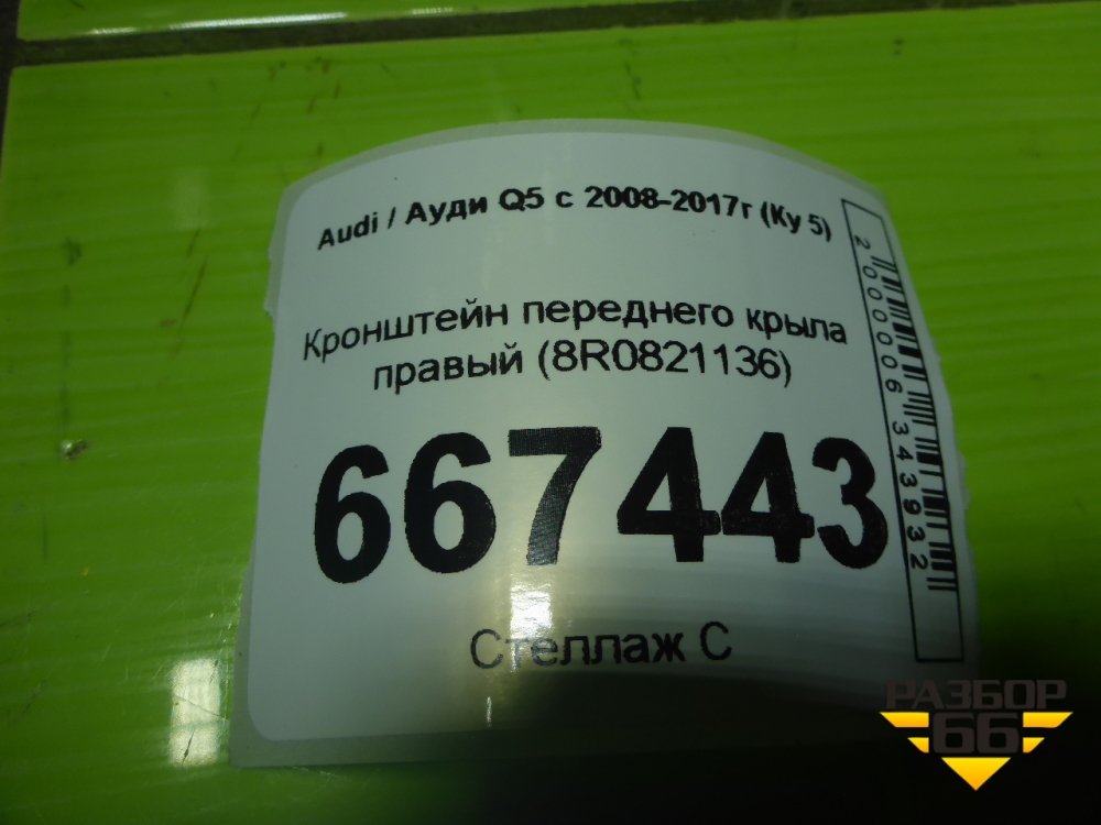 Кронштейн переднего крыла правый (8R0821136) для Audi Q5 c 2008-2017г (Ку 5) в Уфе