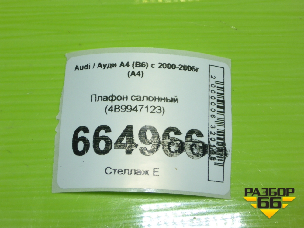 Плафон салонный (4B9947123) для Audi A4 (В6) с 2000-2006г (А4) в Уфе