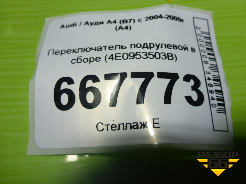 Переключатель подрулевой в сборе (4E0953503B) для Audi A4 (В7) с 2004-2009г (А4) в Уфе