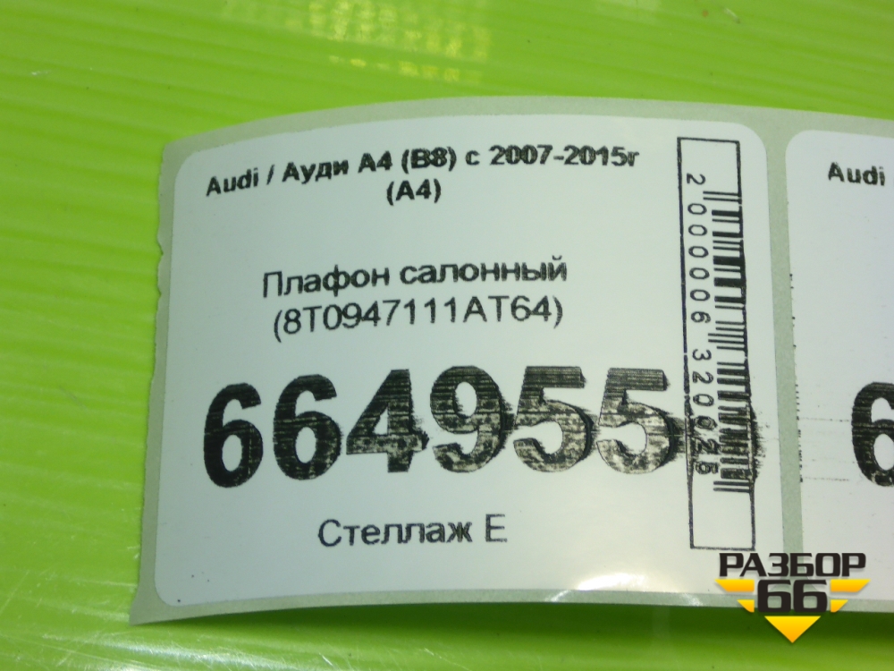 Плафон салонный (8T0947111AT64) для Audi A4 (В8) с 2007-2015г (А4) в Уфе