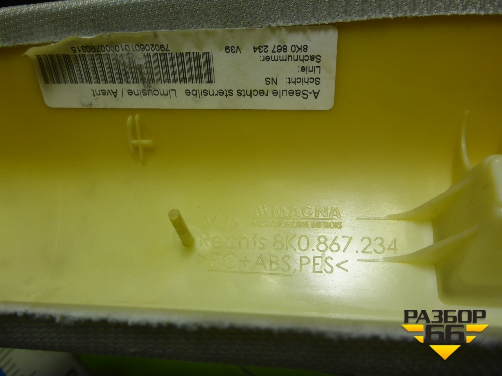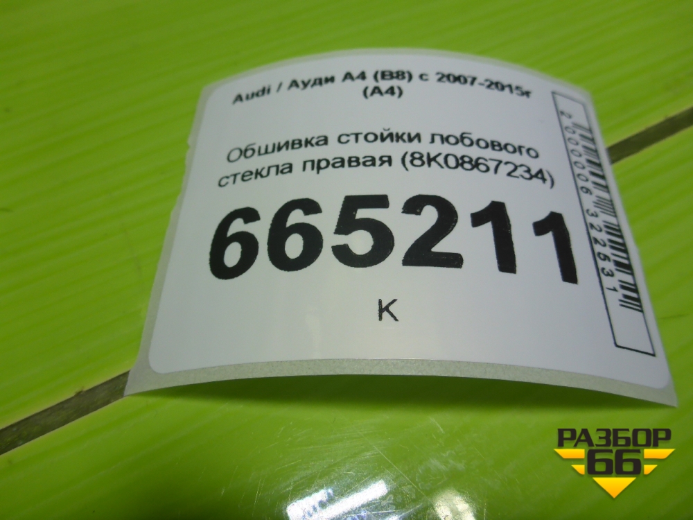 Обшивка стойки лобового стекла правая (8K0867234) для Audi A4 (В8) с 2007-2015г (А4) в Уфе
