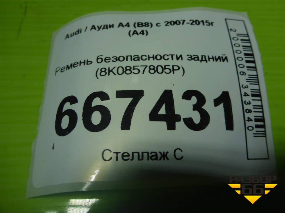 Ремень безопасности задний (8K0857805P) для Audi A4 (В8) с 2007-2015г (А4) в Уфе