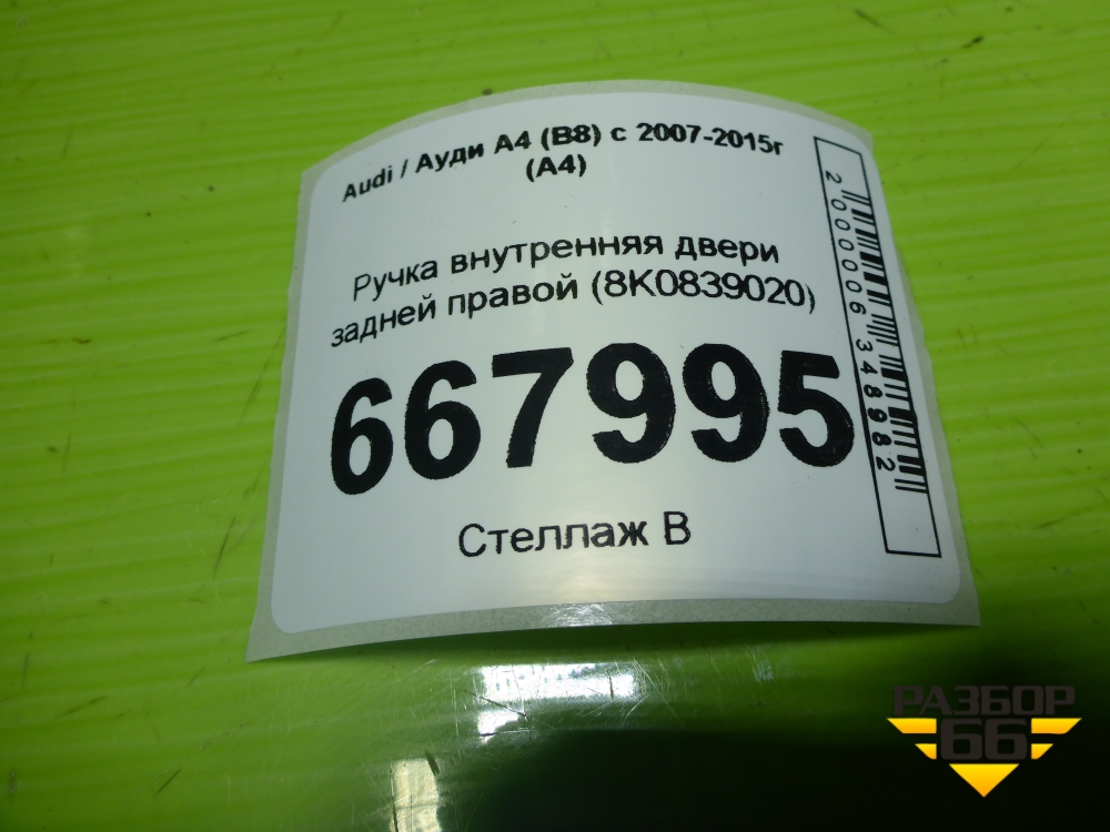 Ручка внутренняя двери задней правой (8K0839020) для Audi A4 (В8) с 2007-2015г (А4) в Уфе
