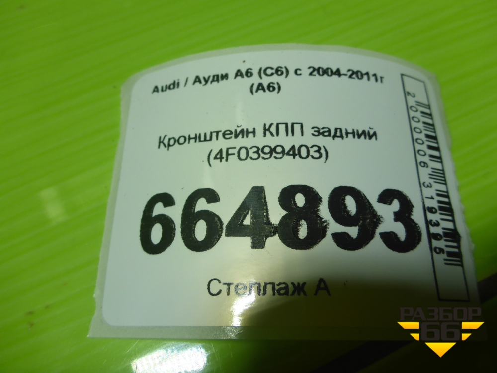 Кронштейн КПП задний (4F0399403) для Audi A6 (C6) с 2004-2011г (А6) в Уфе