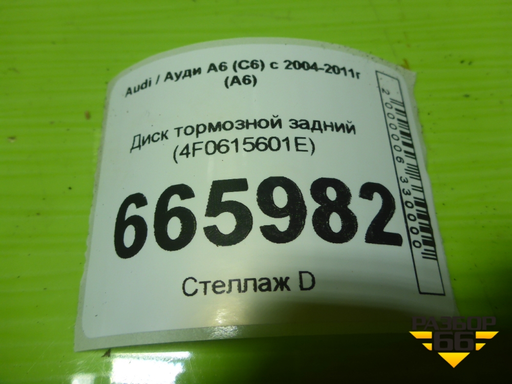 Диск тормозной задний (4F0615601E) для Audi A6 (C6) с 2004-2011г (А6) в Уфе