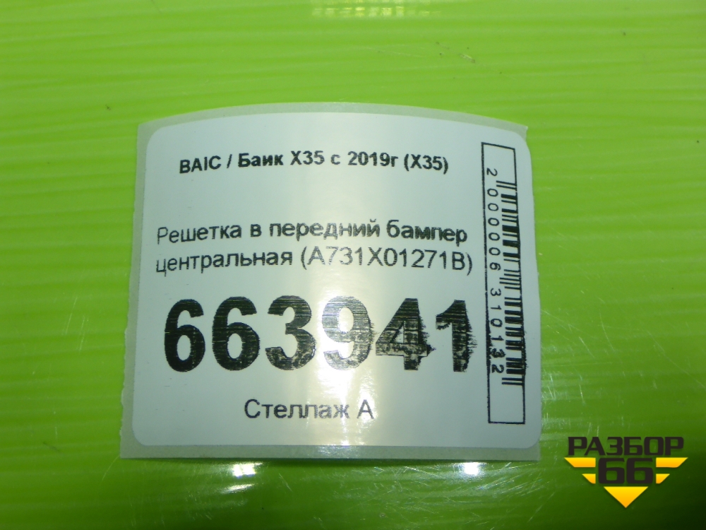 Решетка в передний бампер центральная (A731X01271B) для BAIC X35 с 2019г (Х35) в Уфе