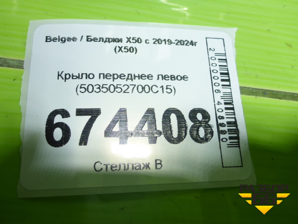 Крыло переднее левое (5035052700C15) для Belgee X50 с 2019-2024г (Х50) в Уфе
