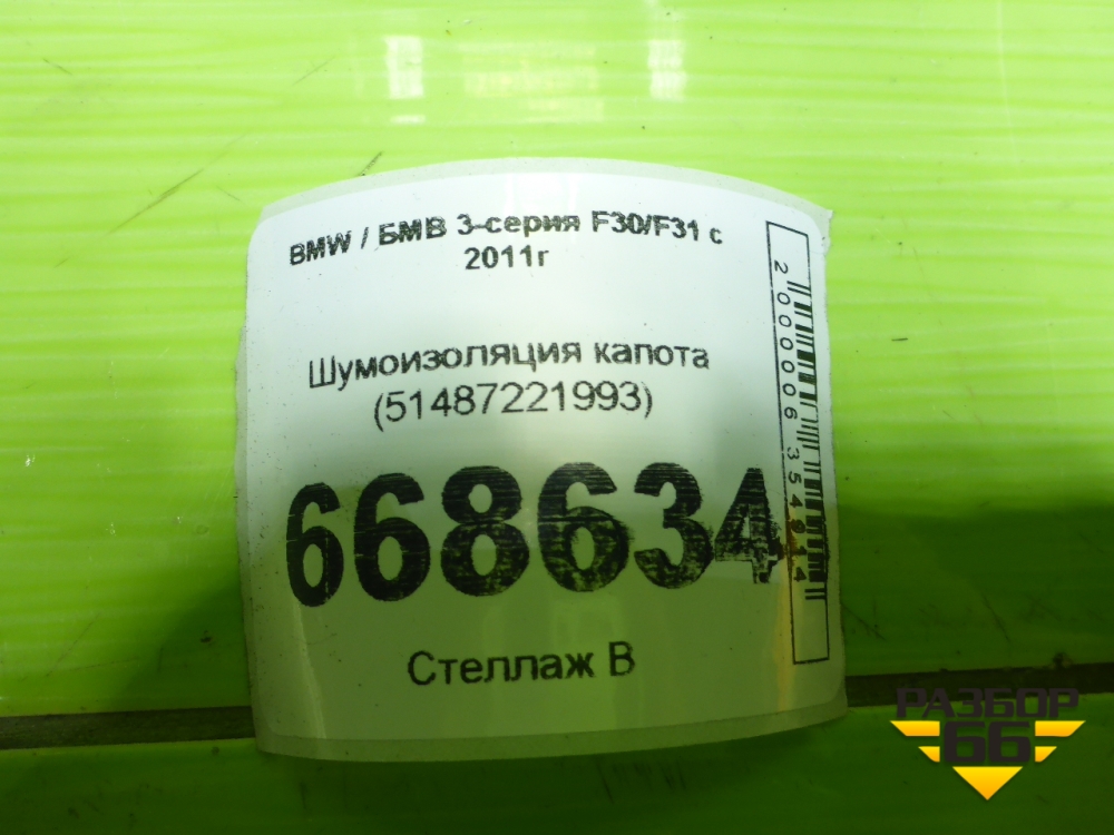 Шумоизоляция капота (51487221993) для BMW 3-серия F30/F31 с 2011г в Уфе