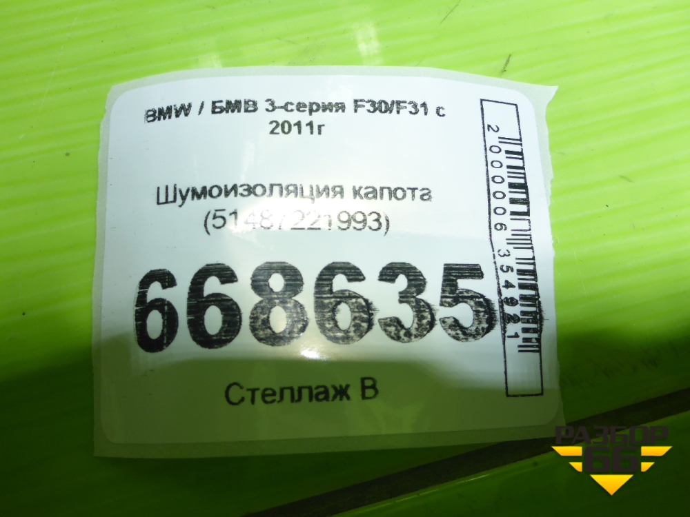 Шумоизоляция капота (51487221993) для BMW 3-серия F30/F31 с 2011г в Уфе