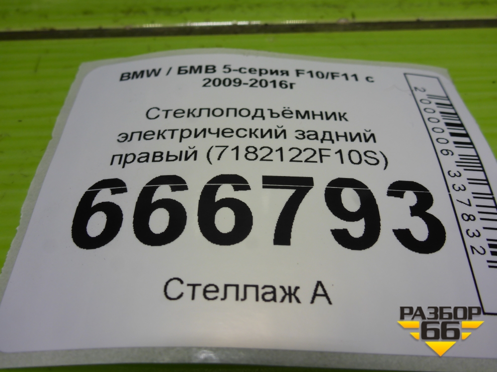 Стеклоподъёмник электрический задний правый (7182122F10S) для BMW 5-серия F10/F11 с 2009-2016г в Уфе