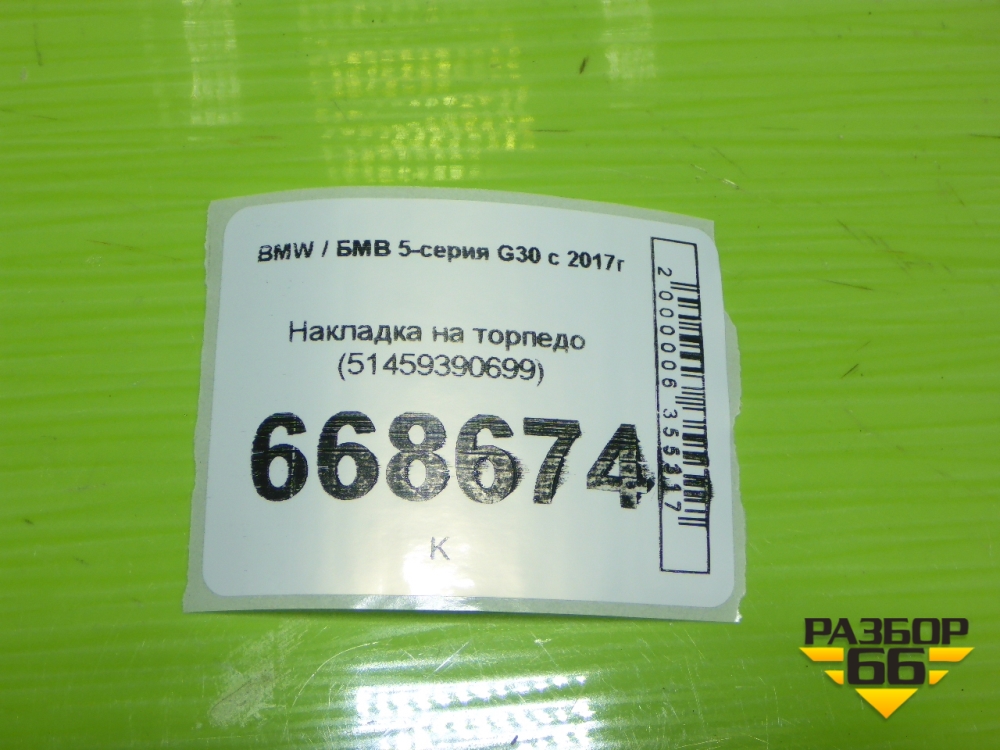 Накладка на торпедо (51459390699) для BMW 5-серия G30 с 2017г в Уфе