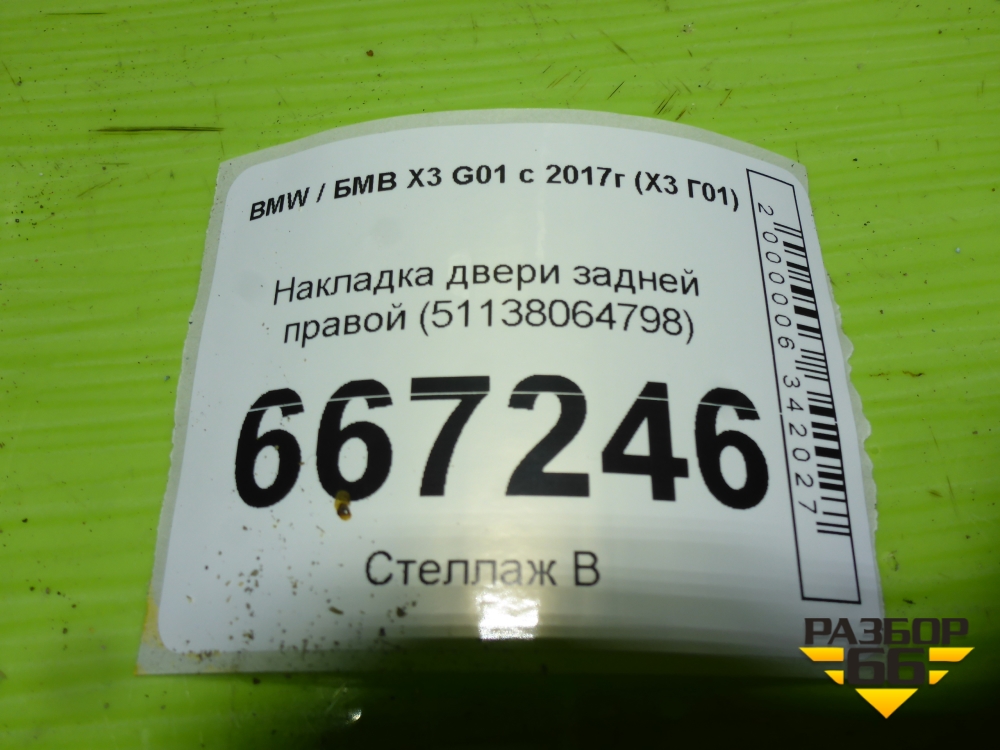 Накладка двери задней правой (51138064798) для BMW X3 G01 с 2017г (Х3 Г01) в Уфе