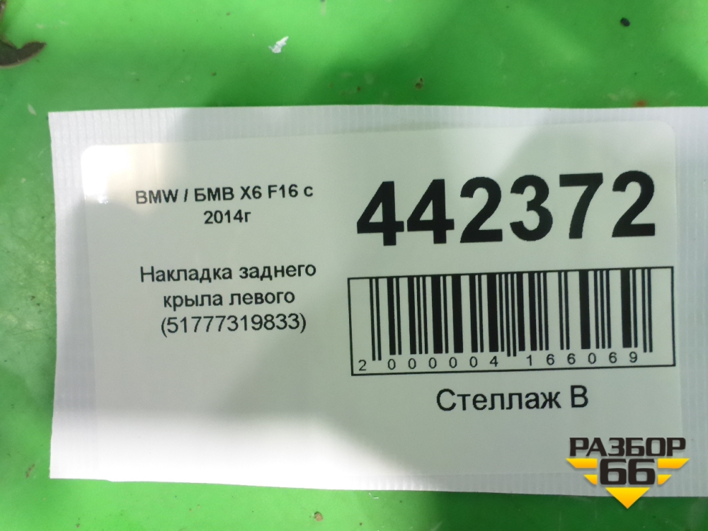 Накладка заднего крыла левого (51777319833) для BMW X6 F16 с 2014г (Х6 Ф16) в Уфе