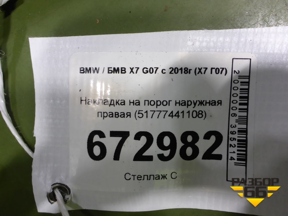 Накладка на порог наружная правая (51777441108) для BMW X7 G07 с 2018г (Х7 Г07) в Уфе