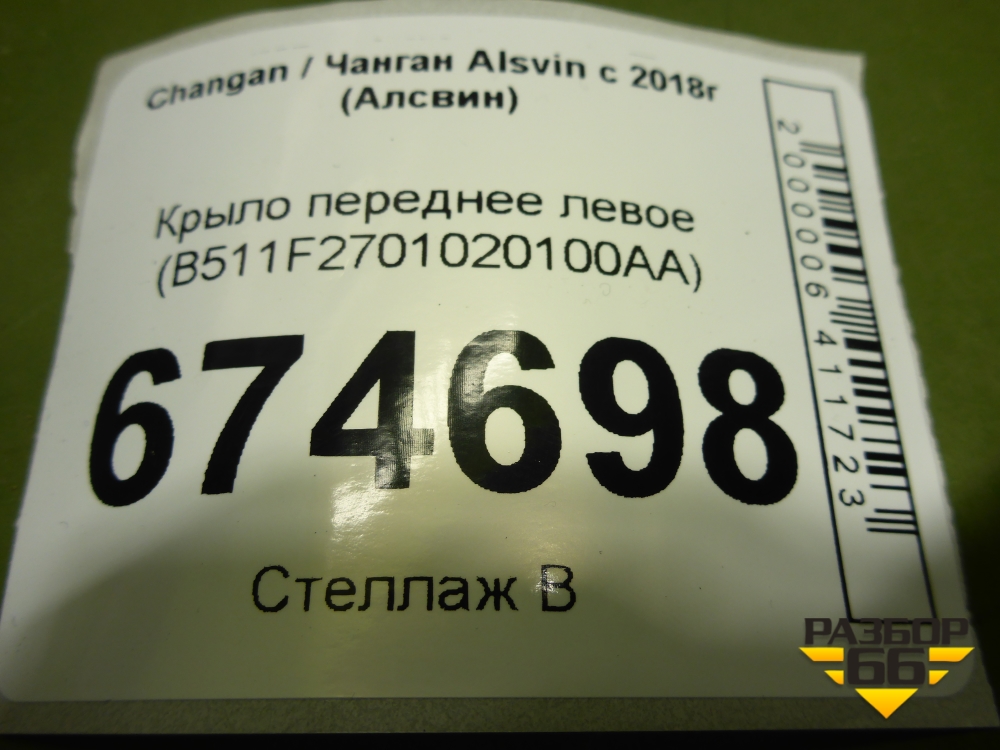 Крыло переднее левое (B511F2701020100AA) для Changan Alsvin с 2018г (Алсвин) в Уфе