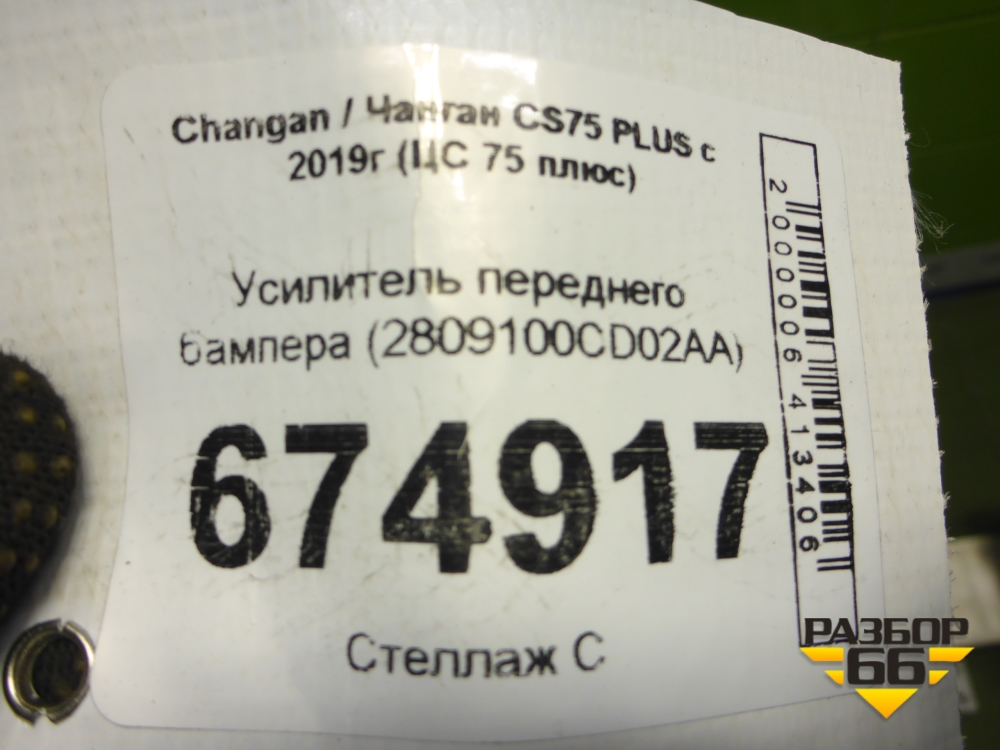 Усилитель переднего бампера (2809100CD02AA) для Changan CS75 PLUS с 2019г (ЦС 75 плюс) в Уфе