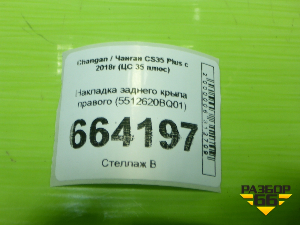 Накладка заднего крыла правого (5512620BQ01) для Changan CS35 Plus с 2018г (ЦС 35 плюс) в Уфе
