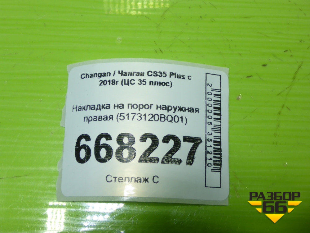 Накладка на порог наружная правая (5173120BQ01) для Changan CS35 Plus с 2018г (ЦС 35 плюс) в Уфе