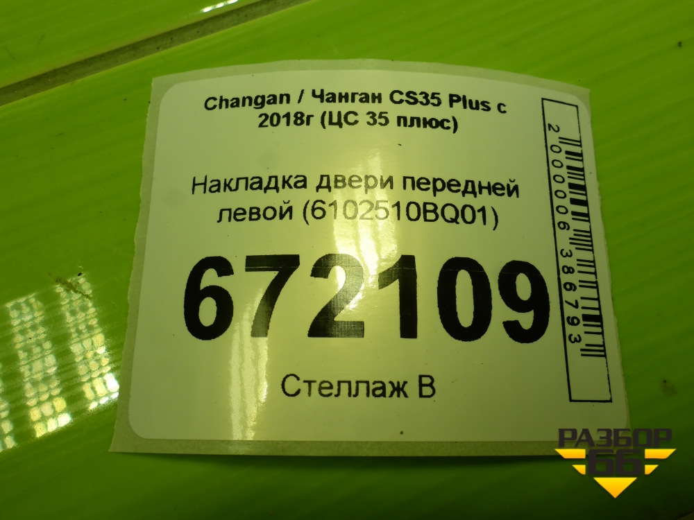 Накладка двери передней левой (6102510BQ01) для Changan CS35 Plus с 2018г (ЦС 35 плюс) в Уфе
