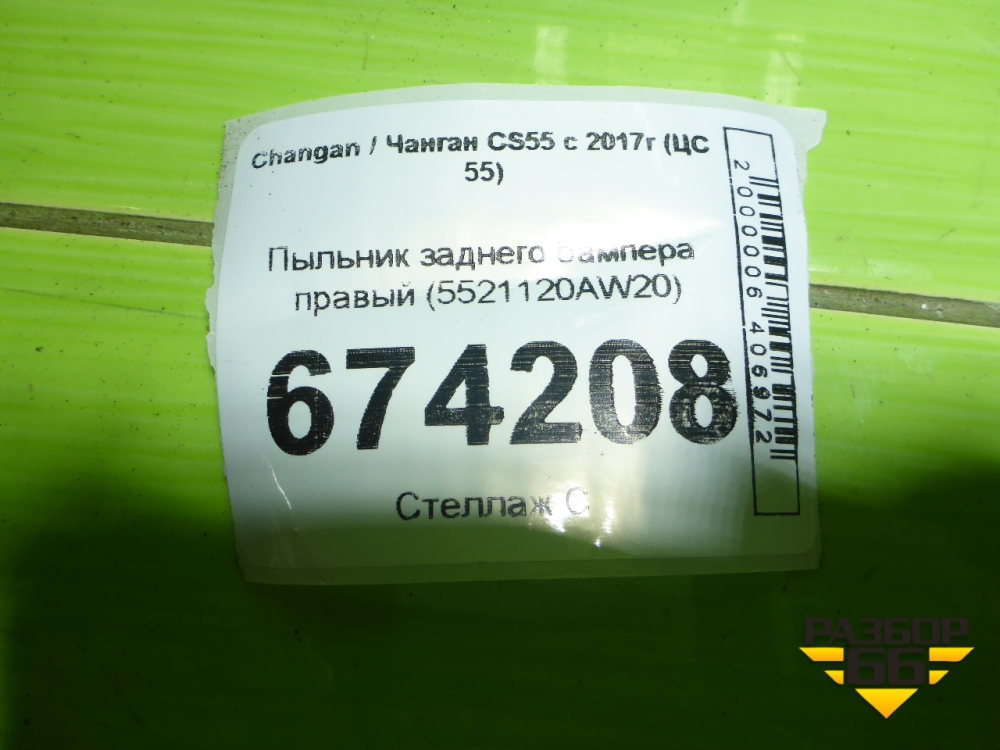 Пыльник заднего бампера правый (5521120AW20) для Changan CS55 c 2017г (ЦС 55) в Уфе