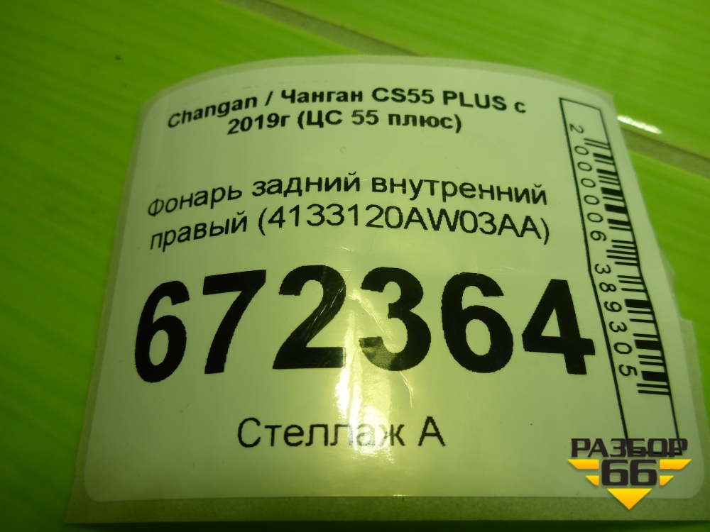 Фонарь задний внутренний правый (4133120AW03AA) для Changan CS55 PLUS с 2019г (ЦС 55 плюс) в Уфе