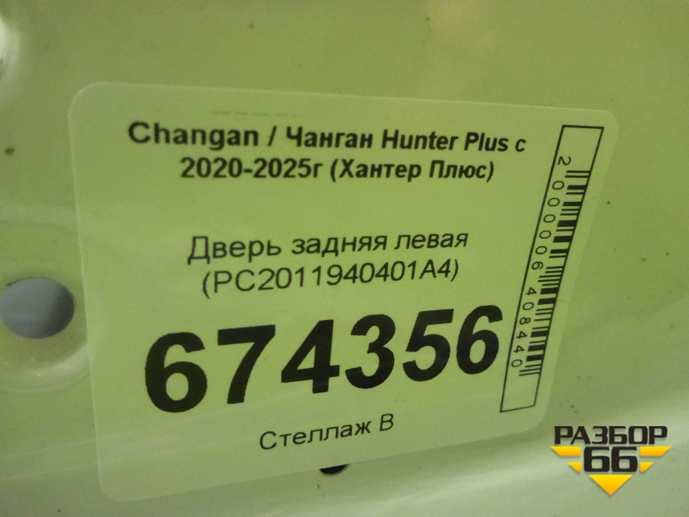 Дверь задняя левая (PC2011940401A4) для Changan Hunter Plus с 2020-2025г (Хантер Плюс) в Уфе