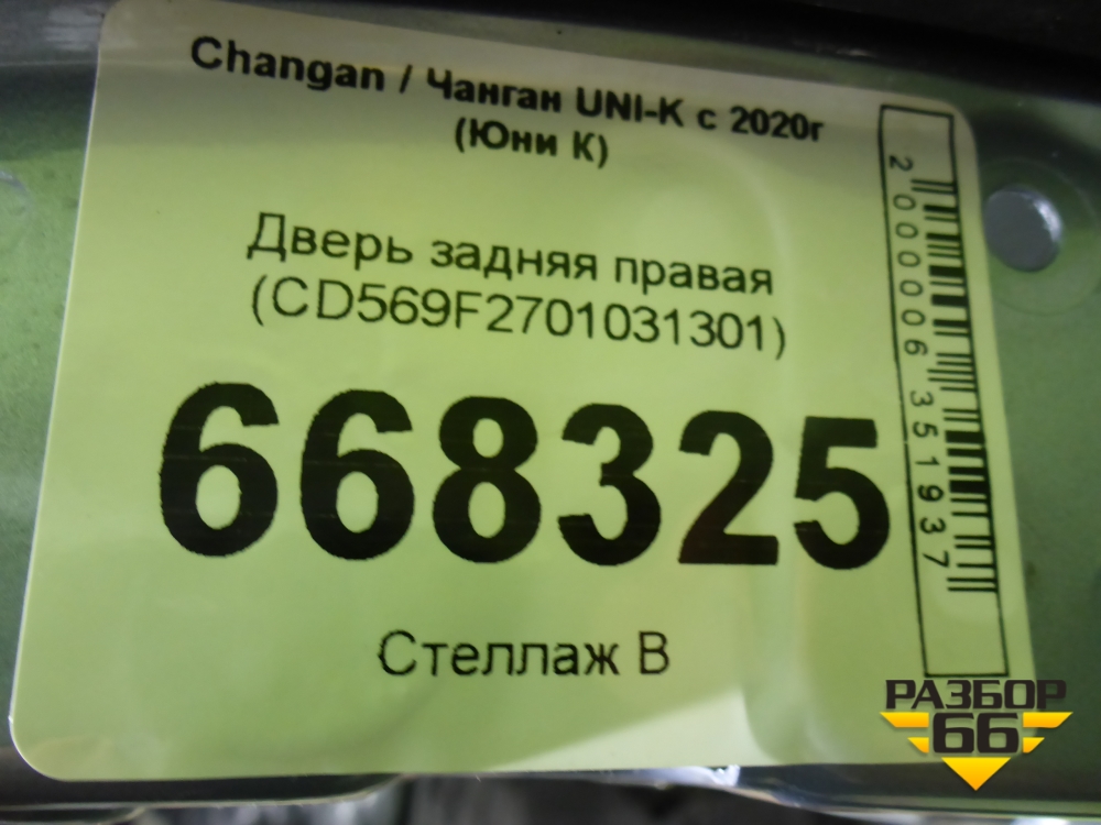 Дверь задняя правая (CD569F2701031301) для Changan UNI-K с 2020г (Юни К) в Уфе