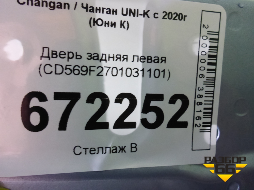 Дверь задняя левая (CD569F2701031101) для Changan UNI-K с 2020г (Юни К) в Уфе