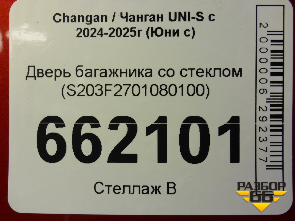Дверь багажника со стеклом (S203F2701080100) для Changan UNI-S с 2024-2025г (Юни с) в Уфе