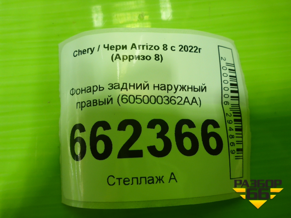 Фонарь задний наружный правый (605000362AA) для Chery Arrizo 8 с 2022г (Арризо 8) в Уфе