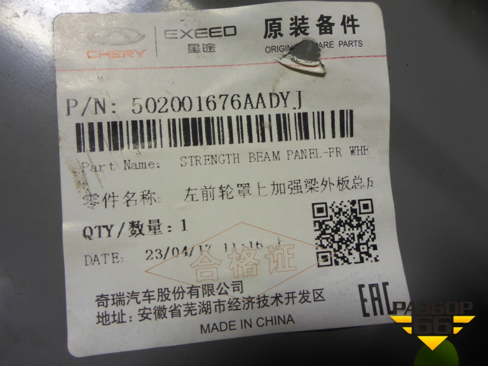 Кузовной элемент (панель переднего левого лонжерона) (502001676AADYJ) для Chery Arrizo 8 с 2022г (Арризо 8) в Уфе