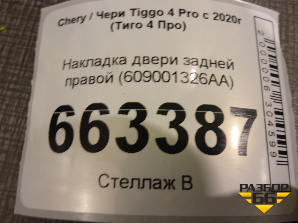 Накладка двери задней правой (609001326AA) для Chery Tiggo 4 Pro с 2020г (Тиго 4 Про) в Уфе