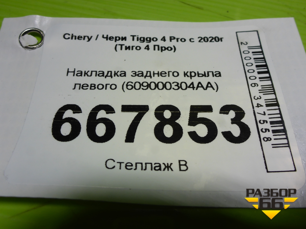 Накладка заднего крыла левого (609000304AA) для Chery Tiggo 4 Pro с 2020г (Тиго 4 Про) в Уфе