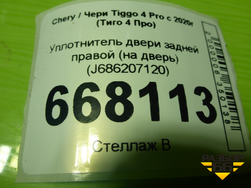Уплотнитель двери задней правой (на дверь) (J686207120) для Chery Tiggo 4 Pro с 2020г (Тиго 4 Про) в Уфе