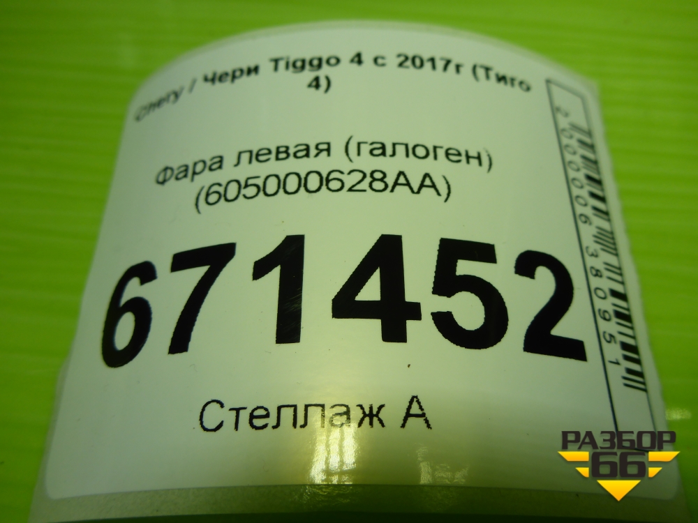 Фара левая (галоген) (605000628AA) для Chery Tiggo 4 с 2017-2025г (Тиго 4) в Уфе