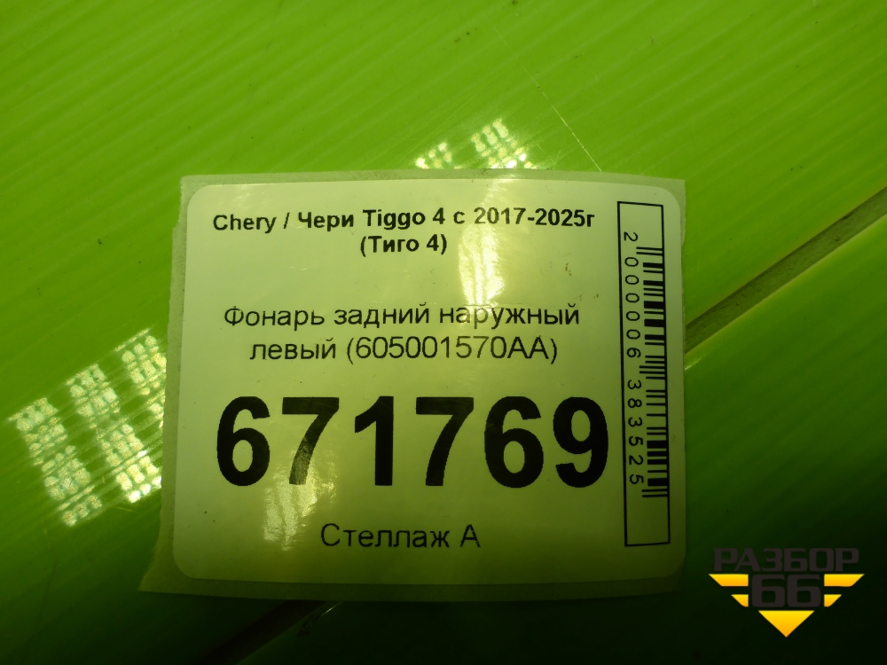 Фонарь задний наружный левый (605001570AA) для Chery Tiggo 4 с 2017-2025г (Тиго 4) в Уфе