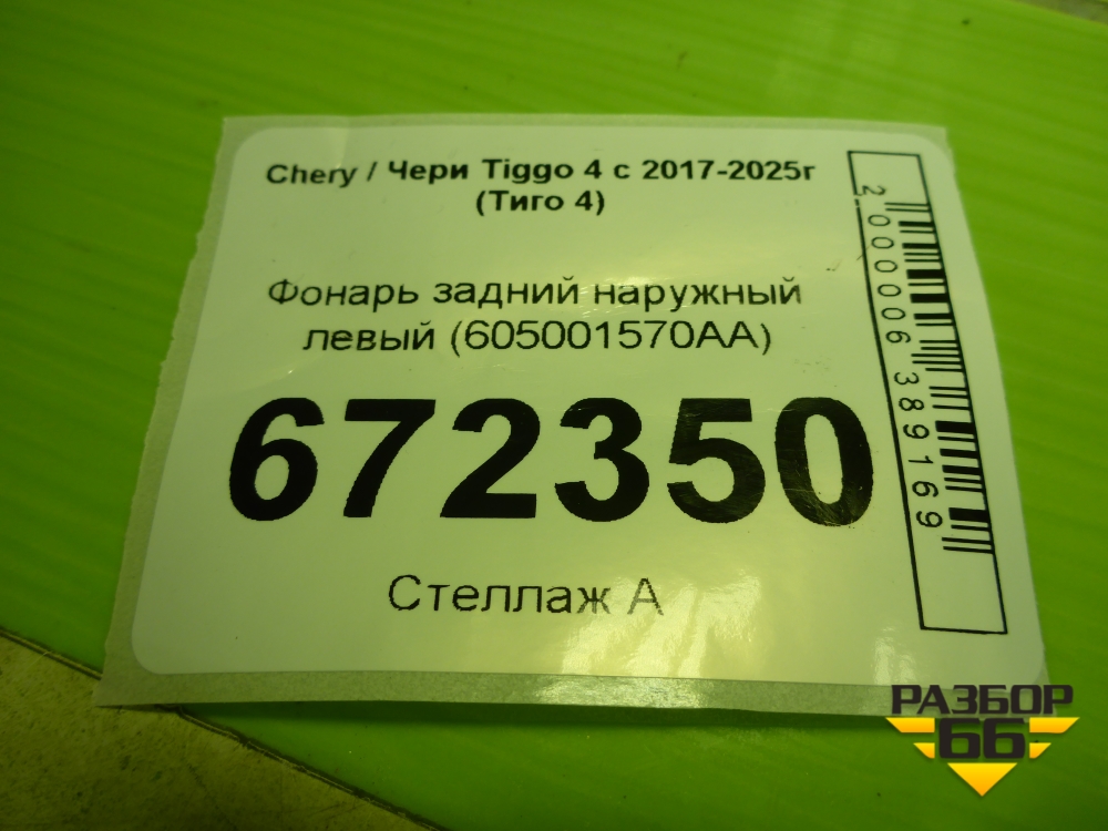 Фонарь задний наружный левый (605001570AA) для Chery Tiggo 4 с 2017-2025г (Тиго 4) в Уфе