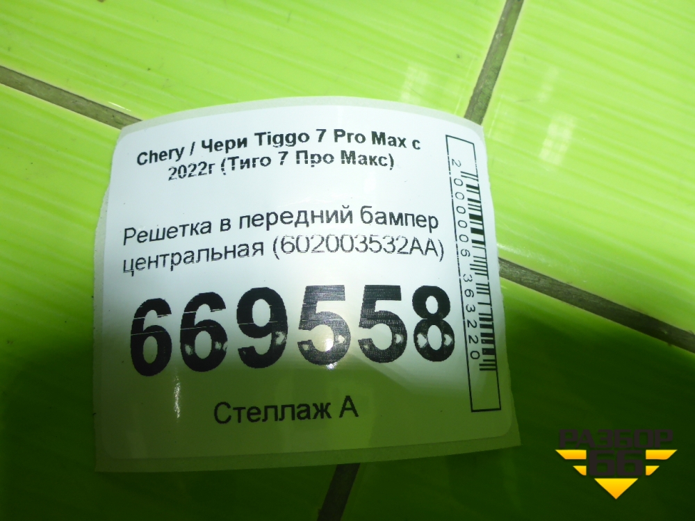 Решетка в передний бампер центральная (602003532AA) для Chery Tiggo 7 Pro Max с 2022г (Тиго 7 Про Макс) в Уфе