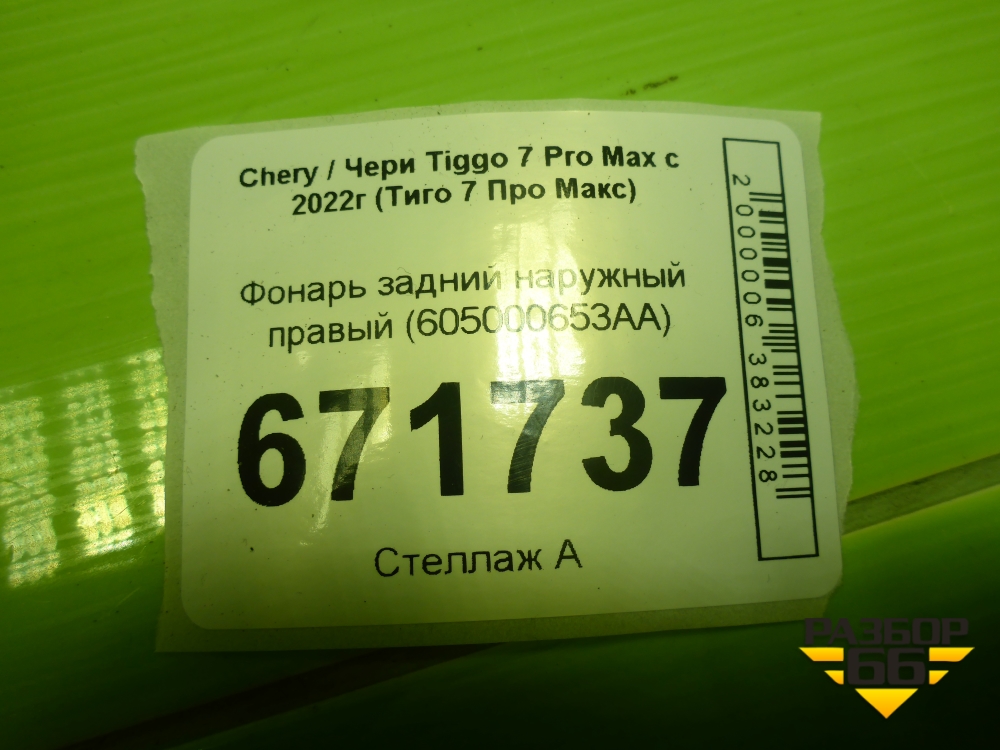 Фонарь задний наружный правый (605000653AA) для Chery Tiggo 7 Pro Max с 2022г (Тиго 7 Про Макс) в Уфе