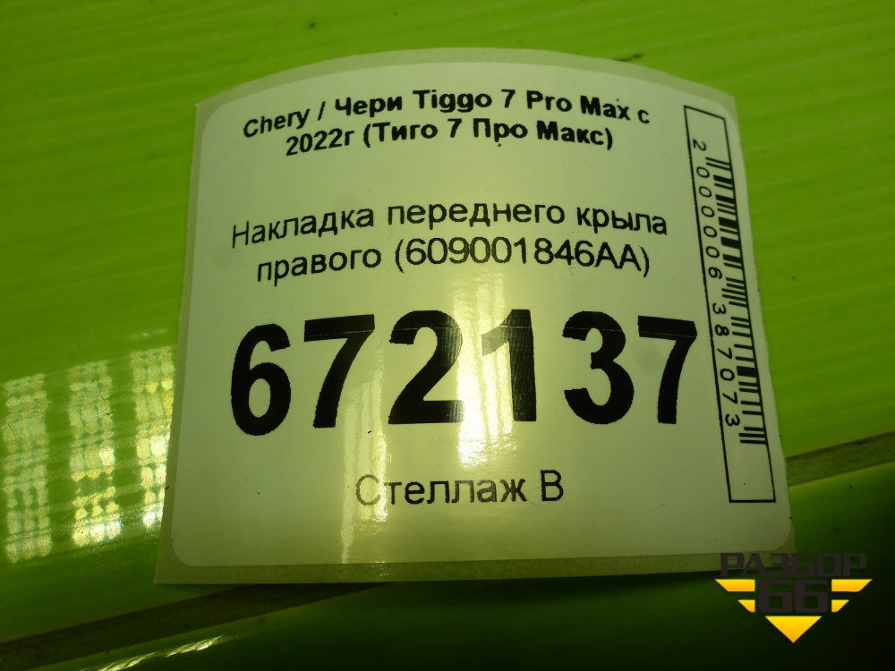 Накладка переднего крыла правого (609001846AA) для Chery Tiggo 7 Pro Max с 2022г (Тиго 7 Про Макс) в Уфе