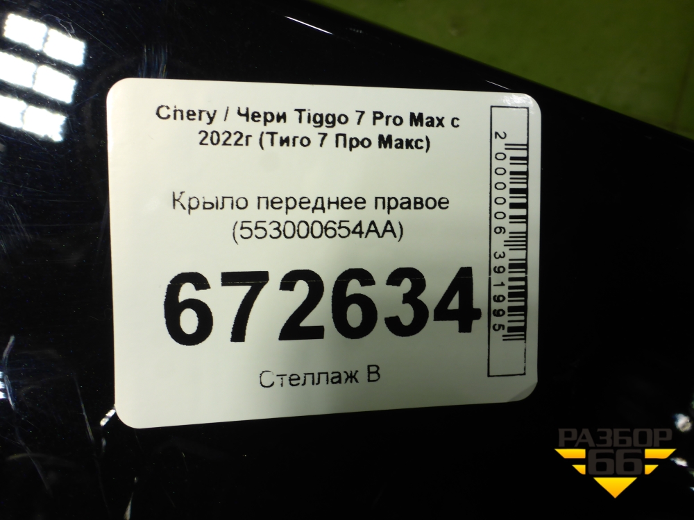 Крыло переднее правое (553000654AA) для Chery Tiggo 7 Pro Max с 2022г (Тиго 7 Про Макс) в Уфе
