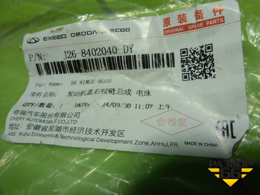 Петля капота правая (новая) (J268402040) для Chery Tiggo 7 Pro с 2019г (Тиго 7 Про) в Уфе