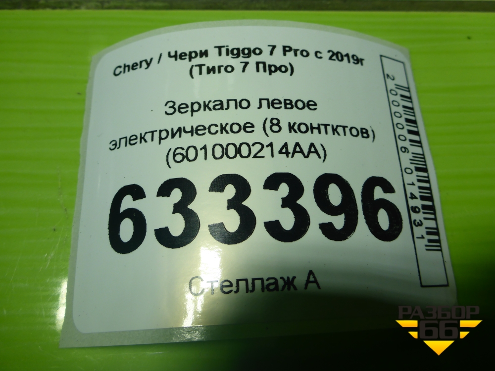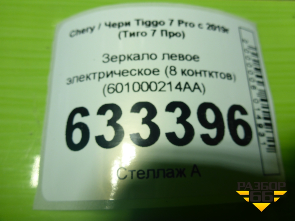Зеркало левое электрическое (8 контктов) (601000214AA) для Chery Tiggo 7 Pro с 2019г (Тиго 7 Про) в Уфе