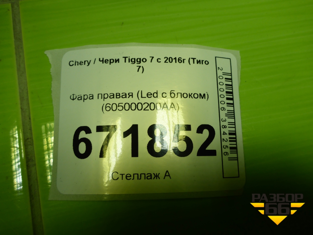 Фара правая (Led с блоком) (605000200AA) для Chery Tiggo 7 Pro с 2019г (Тиго 7 Про) в Уфе