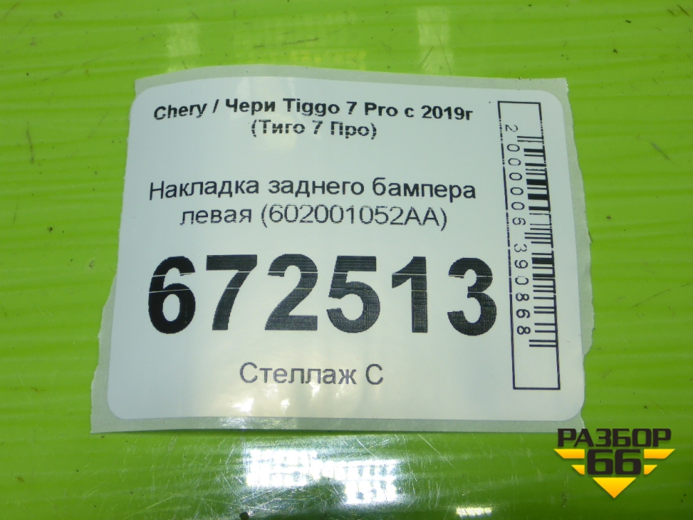 Накладка заднего бампера левая (602001052AA) для Chery Tiggo 7 Pro с 2019г (Тиго 7 Про) в Уфе