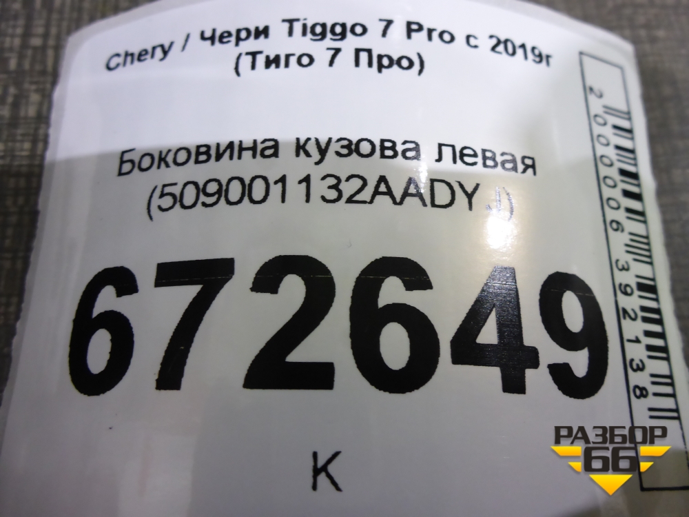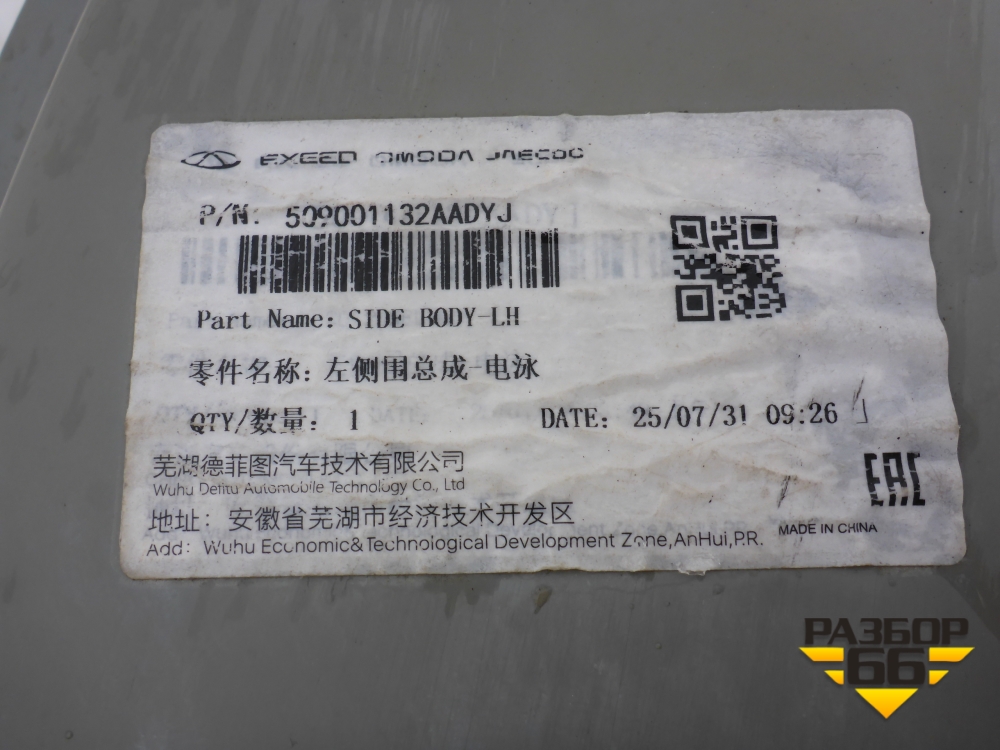 Боковина кузова левая (новая) (509001132AADYJ) для Chery Tiggo 7 Pro с 2019г (Тиго 7 Про) в Уфе