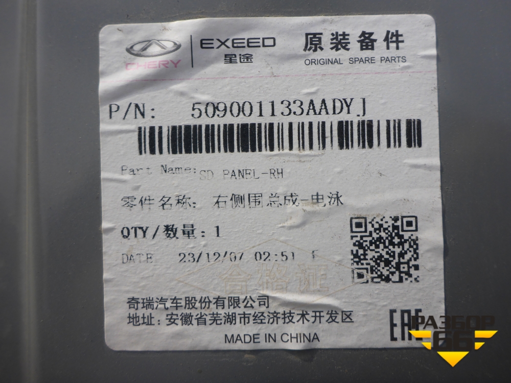 Боковина кузова правая (новая) (509001133AADYJ) для Chery Tiggo 7 Pro с 2019г (Тиго 7 Про) в Уфе