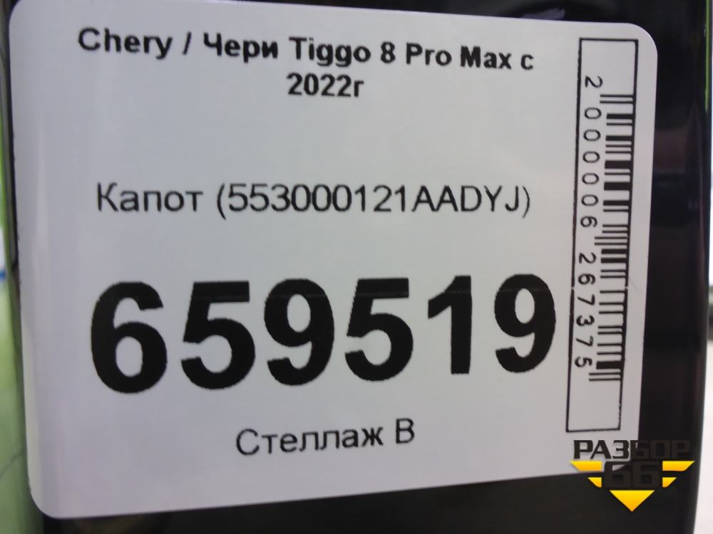Капот (553000121AADYJ) для Chery Tiggo 8 Pro Max с 2022г (Тиго 8 Про Макс) в Уфе