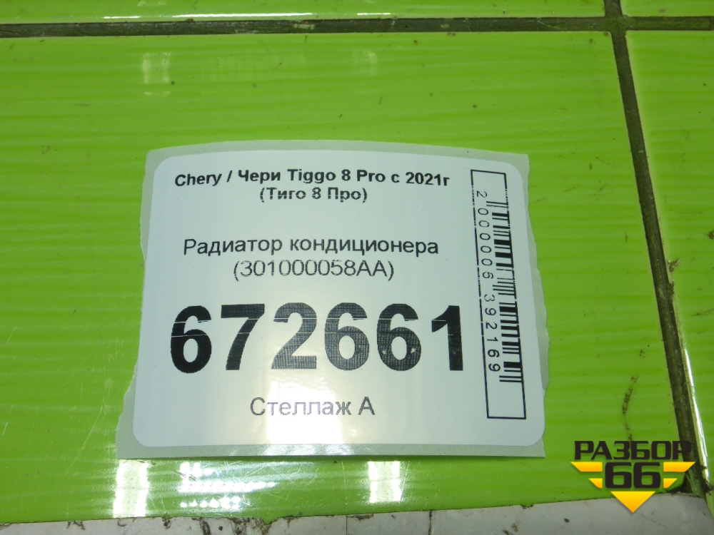 Радиатор кондиционера (301000058AA) для Chery Tiggo 8 Pro с 2021г (Тиго 8 Про) в Уфе