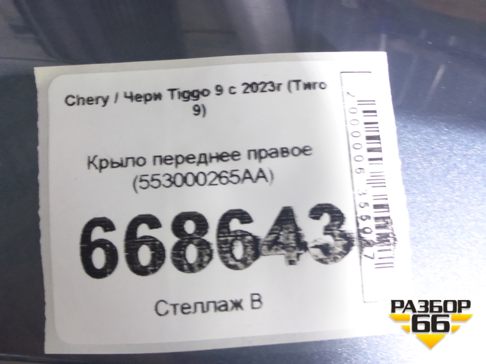 Крыло переднее правое (553000265AA) для Chery Tiggo 9 с 2023г (Тиго 9) в Уфе